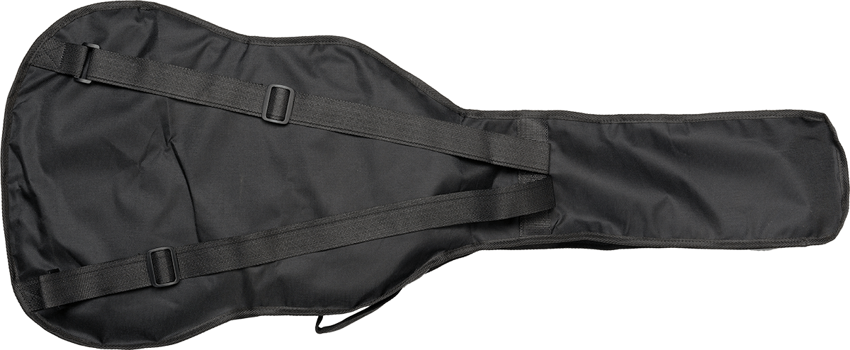 Housse guitare classique 3/4 avec 1 poche intégrée pour accessoires, 2 sangles nylon ajustables, 2 poignées rembourrées (frontale et latérale), coloris noir.