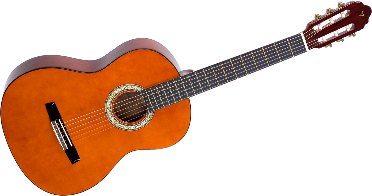 Guitare classique 4/4 - Table en tilleul - Dos et éclisses en tilleul - Manche en nato - Touche en érable sombre - Chevalet en érable sombre - Mécaniques chromées - Frettes en laiton - Vernis brillant