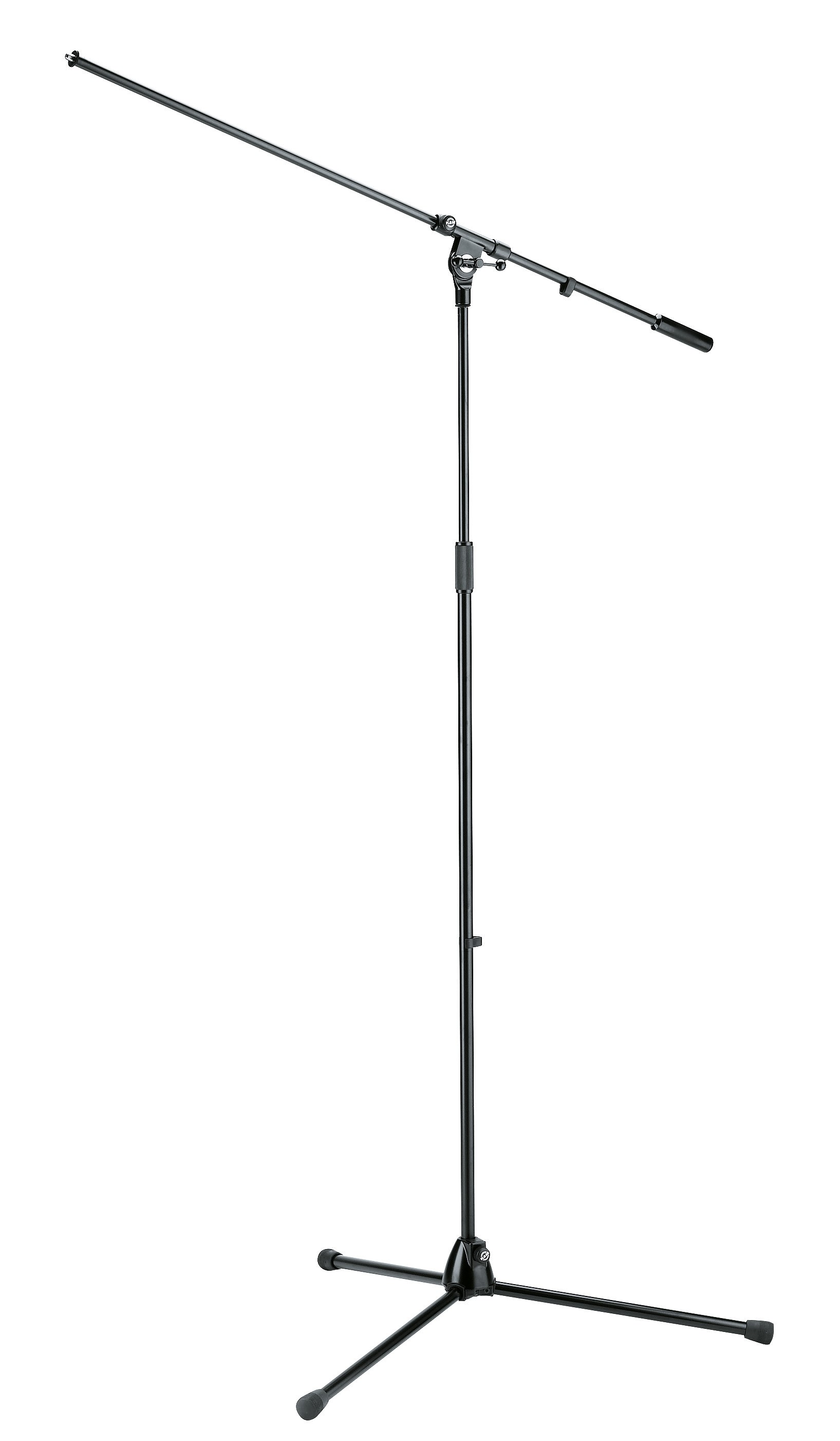 Pied télescopique avec perche destiné à la prise de son en studio ou sur scène (type over head batterie). Hauteur réglable 1120 à 2010 mm. Vis 3/8”. Poids 5,7 kg. Finition noire.