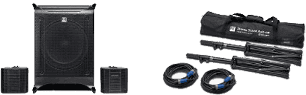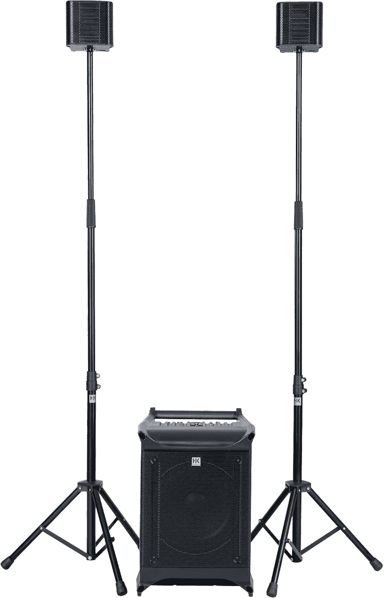 - Type : amplifié - Catégorie : triphonique - Sat - Dispersion (H x V) : 90° x +10/-45° - Tweeter : 1" - Entrées : minijack, 2 x XLR/jack - Sat - Haut-parleurs : 4,5" - Sorties : Speakon, link jack - Sub - Haut-parleurs : 10" - Alimentation : 100 - 240 V AC - 50/60 Hz - Accessoires inclus : stands - Sat - Réponse en fréquence : 190 Hz - 20 kHz - Sub - Réponse en fréquence : 43 Hz - 190 Hz - Poids (kg) : 22,70 kg - Sat - SPL max : 130 dB - Sub - SPL max : 123 dB - Sat - Poids : 1,20 kg - Sub - Poids : 13,90 kg - Puissance totale RMS : 460 W - Puissance en crête : 1 500 W - Sat - Dimensions (mm) : 145 x 145 x 135 - Sub - Dimensions (mm) : 350 x 490 x 470 - Mixeur : Non - Suppresseur de larsen : Non - Bluetooth : Non - Effets intégrés : Non- Specs complémentaires :- Pression acoustique satellites jumelés : 130 dB max peak (@ 10% THD, 1/2 espace)- Dispersion satellites jumelés : 90° x 30° - Pavillon HF : transformateur multicellulaire HK Audio - Haut-parleur satellite : modèle à large bande fabriqué sur mesure (par Celestion) - Connecteur satellite : Speakon - Insert sur satellite pour montage de stand : format 3/8"