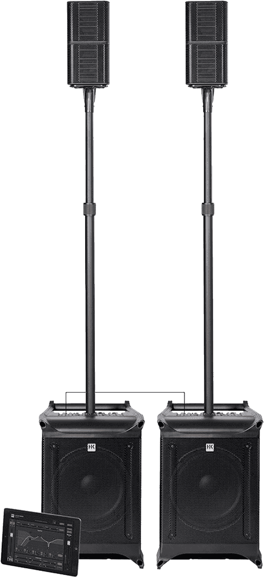 - Type : amplifié - Catégorie : système colonne - Sat - Dispersion (H x V) : 90° x +10/-45° - Tweeter : 1" - Entrées : minijack, jack stéréo, Rca stéréo, 2 x XLR/jack, 4 x combo XLR/jack - Sat - Haut-parleurs : 4,5"- Sorties : link jack - Sub - Haut-parleurs : 10" - Alimentation : 100 - 240 V AC - 50/60 Hz - Accessoires inclus : mât - Sat - Réponse en fréquence : 190 Hz - 20 kHz - Sub - Réponse en fréquence : 43 Hz - 190 Hz - Poids (kg) : 35 kg - Sat - SPL max : 130 dB - Sub - SPL max : 123 dB - Sat - Poids : 1,20 kg - Sub - Poids : 13,90 kg - Puissance totale RMS : 920 W - Puissance en crête : 3 000 W - Sat - Dimensions (mm) : 145 x 145 x 135 - Sub - Dimensions (mm) : 350 x 490 x 470 - Mixeur : Oui - Suppresseur de larsen : Non - Bluetooth : Oui - Effets intégrés : Oui- Specs complémentaires : - Connecteurs supplémentaires : pédale d'effets- aux send - link (pour mode stéréo twin) - Pression acoustique satellites jumelés : 130 dB max peak (@ 10% THD, 1/2 espace) - Dispersion satellites jumelés : 90° x 30° - Haut-parleur satellite : modèle à large bande fabriqué sur mesure (par Celestion) - Connecteur satellite : Speakon - Insert sur satellite pour montage de stand : format 3/8"